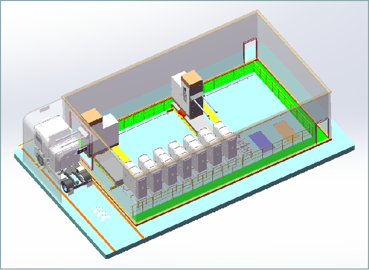 智能換電機器人、電池專用吊具、車載電池自動定位系統、車輛導向、充電底座、消防系統、道閘、顯示大屏、管控系統、監控等。
